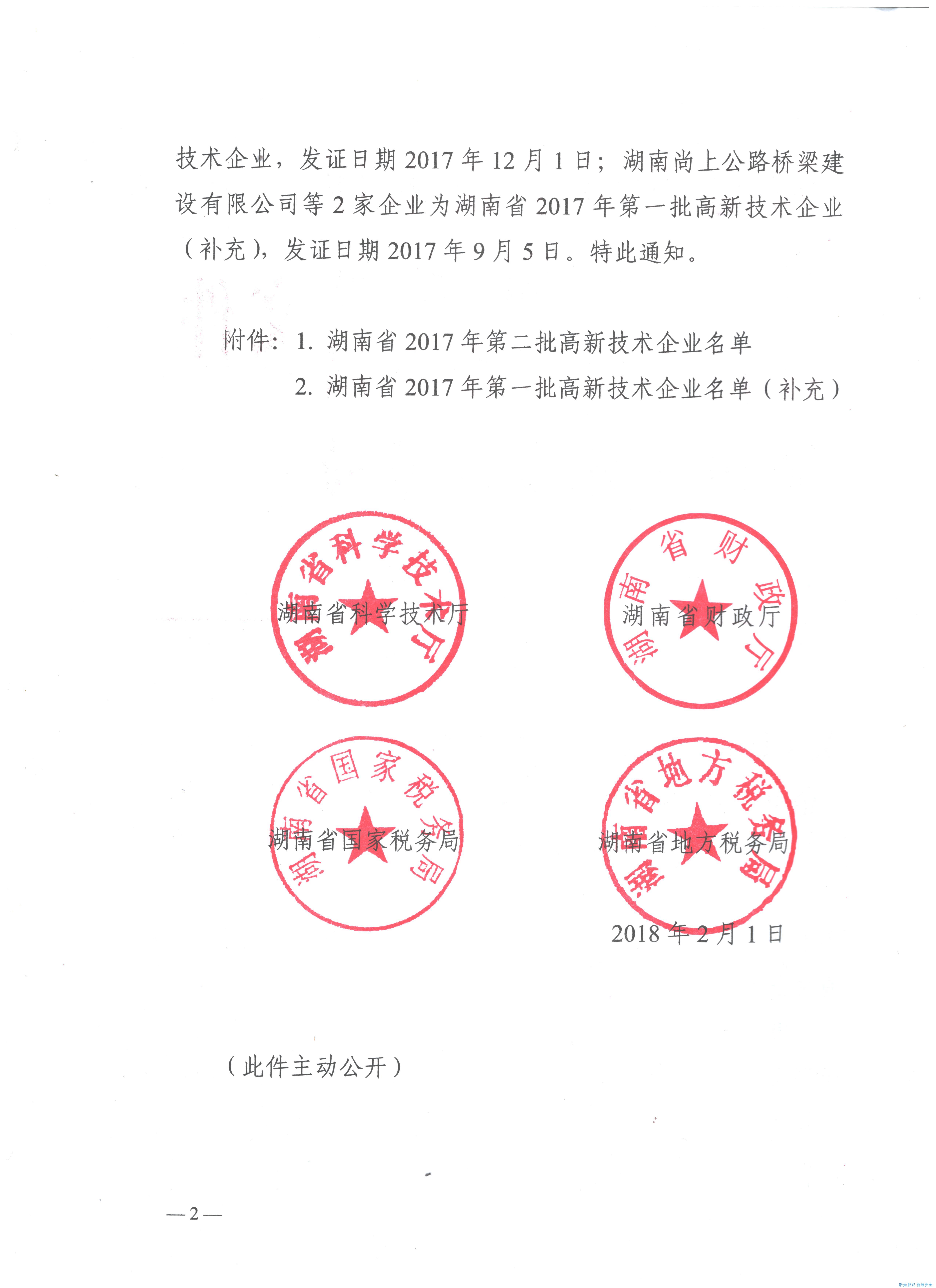在2017年度第二批湖南省高新技術(shù)企業(yè)評(píng)選活動(dòng)中,湖南新光智能科技有限公司順利榮獲由湖南省科技廳、湖南省財(cái)政廳、湖南省國(guó)家稅務(wù)局、湖南省地方稅務(wù)局聯(lián)合頒發(fā)的《高新技術(shù)企業(yè)證書(shū)》,被認(rèn)定為湖南省高新技術(shù)企業(yè)。