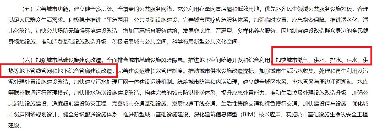 城市更新既肩負著改善民生福祉的核心使命,又承載著培育經濟新動能的戰(zhàn)略任務,國家高度重視城市更新及城市生命線的建設和安全。近日官方發(fā)布《關于持續(xù)推進城市更新行動的意見》中多次提及城市基礎設施的更新改造并明確提出全面排查城市基礎設施風險隱患。推進地下空間統(tǒng)籌開發(fā)和綜合利用。加快城市燃氣、供水、排水、污水、供熱等地下管線管網(wǎng)和地下綜合管廊建設改造,完善建設運維長效管理制度。