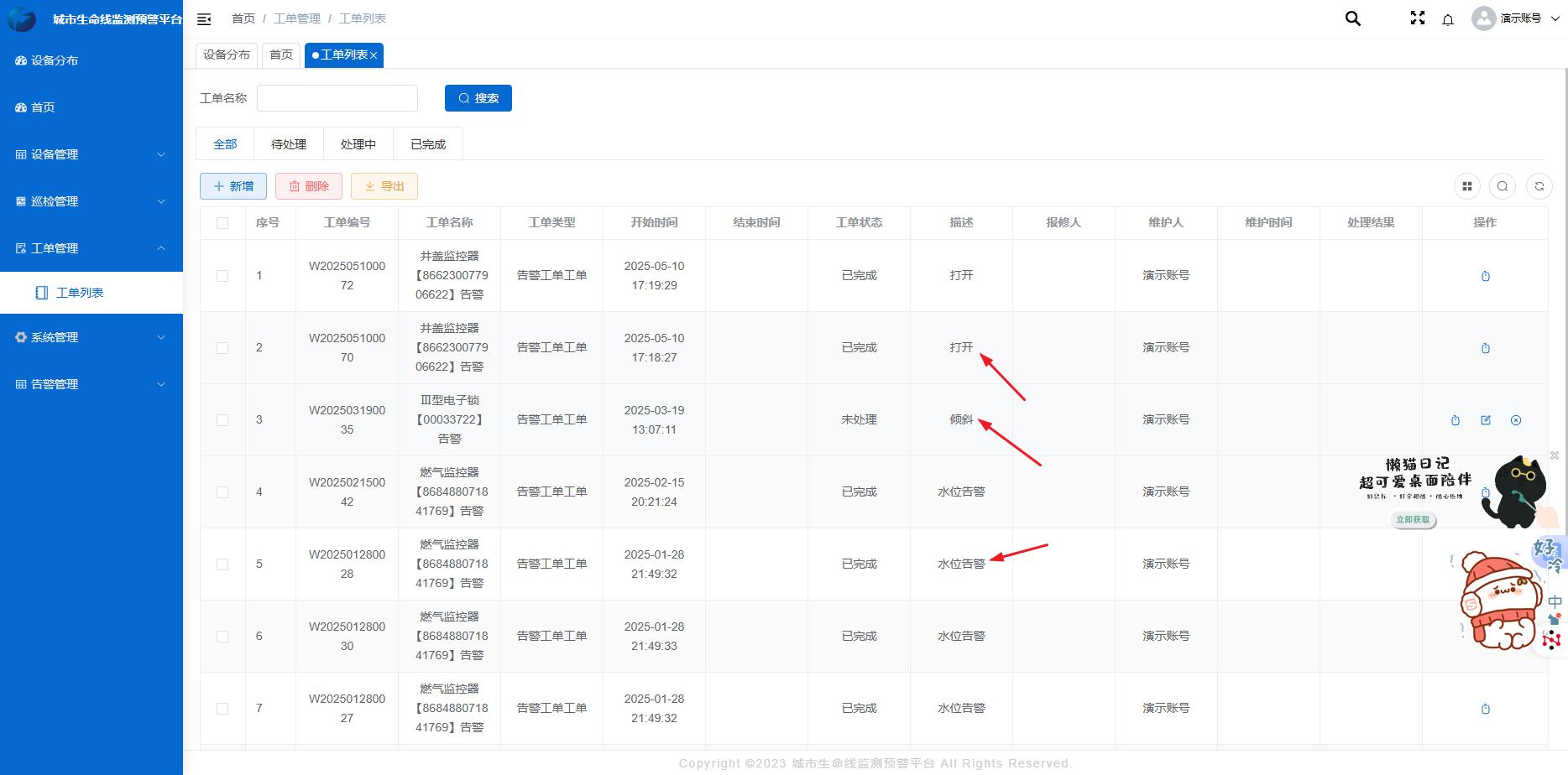 系統(tǒng)接到預警后立即啟動智能分析,自動完成故障點定位、生成維修工單,并將任務實時推送至負責片區(qū)的巡檢人員手中。從險情發(fā)現(xiàn)到指令下達的全流程無縫銜接,讓井蓋管理徹底告別了過去 “巡街式排查”“被動式搶修” 的低效模式,真正實現(xiàn)了監(jiān)測智能化、處置精準化、服務高效化。每一個智能井蓋的穩(wěn)定運行,都在悄然筑牢城市基礎設施的安全防線,讓這不起眼的 “城市紐扣”,真正承載起關乎民生福祉的大責任,也讓我們逐漸告別對井蓋安全問題的無奈與被動應對。