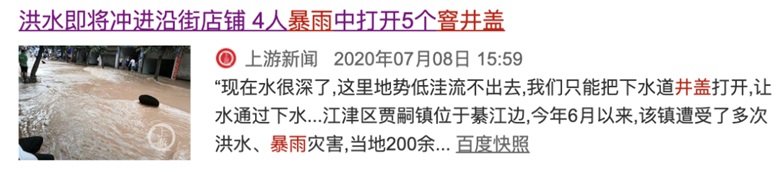 而這其中,就有許多因為井蓋缺失而造成事故和麻煩:正在行駛汽車車輪突然陷入“無蓋井”、騎車的人被凸起的井蓋絆倒摔傷、行人不慎踩空掉進井內(nèi)......大家給這樣的情形起了一個可怕的名字——“吃人”的井蓋。