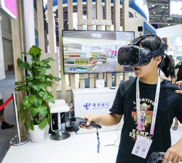 觀眾在智博會(huì)上體驗(yàn)“5G全景直播”技術(shù)